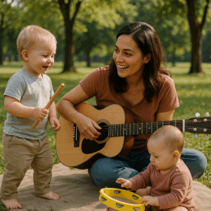 Pesquisas recentes confirmam que a música na primeira infância estimula áreas do cérebro ligadas à linguagem, à memória e à coordenação. De acordo com a pesquisadora Patrícia Vanzella, da UFABC, “a música é uma forma de comunicação anterior à linguagem verbal”. Portanto, oferecer experiências musicais desde cedo é um investimento no futuro da criança.